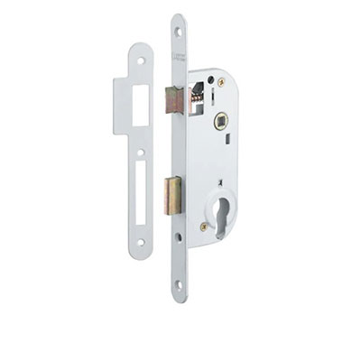 Réf. : 84245 en stockSerrure à encastrer composée de : 1 coffre + 1 gâche + 2 clés à gorge - Coffre en acier embouti - Têtière et gâche plate : Bouts ronds en acier zingué - Demi-tour alliage réversible sans démontage du coffre - Pêne acier - Mécanisme à 1/2 ou 2 tours - Axe : 40 mm - Liaison : Carré 7 mm - Entraxe coffre : 70 mm - Système de fermeture : Double entrée.